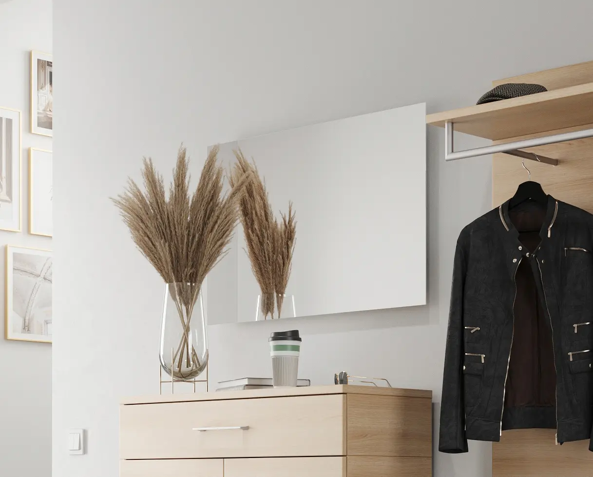 - Spiegel: Ein schöner Spiegel sorgt nicht nur für eine optische Vergrößerung des Raumes, sondern dient auch als praktisches Hilfsmittel für die letzte Kontrolle vor dem Verlassen des Hauses.